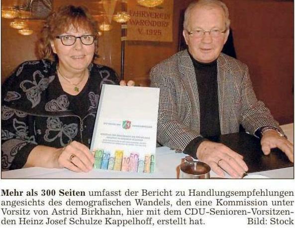 Warendorf (wst). Umfassend sind die CDU-Senioren am Montagnachmittag von der Landtagsabgeordneten Astrid Birkhahn über deren Analyse des demografischen Wandels informiert worden.